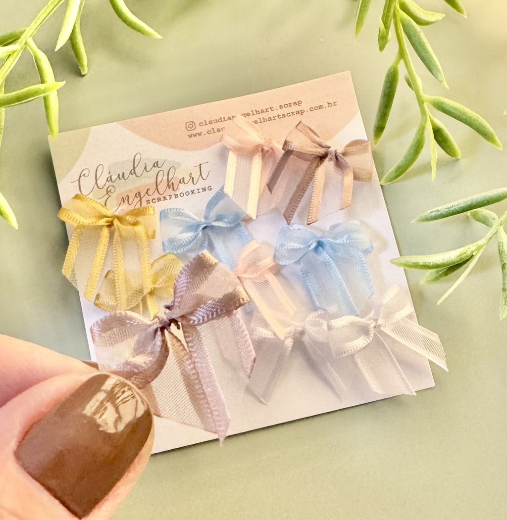Embalagem com 10 lacinhos voal, sendo 2 unidade de cada cor, tamanho aproximado de 7mm.